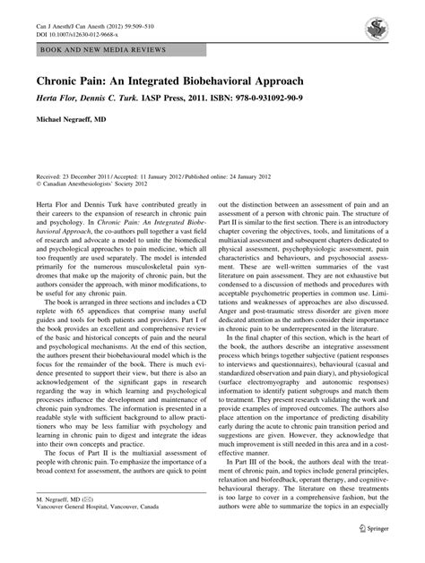 Read Online Download Chronic Pain An Integrated Biobehavioral Approach PDF Reader